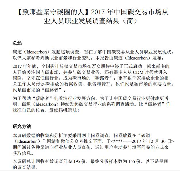 2017年中國碳交易市場從業(yè)人員職業(yè)發(fā)展調(diào)查結(jié)果